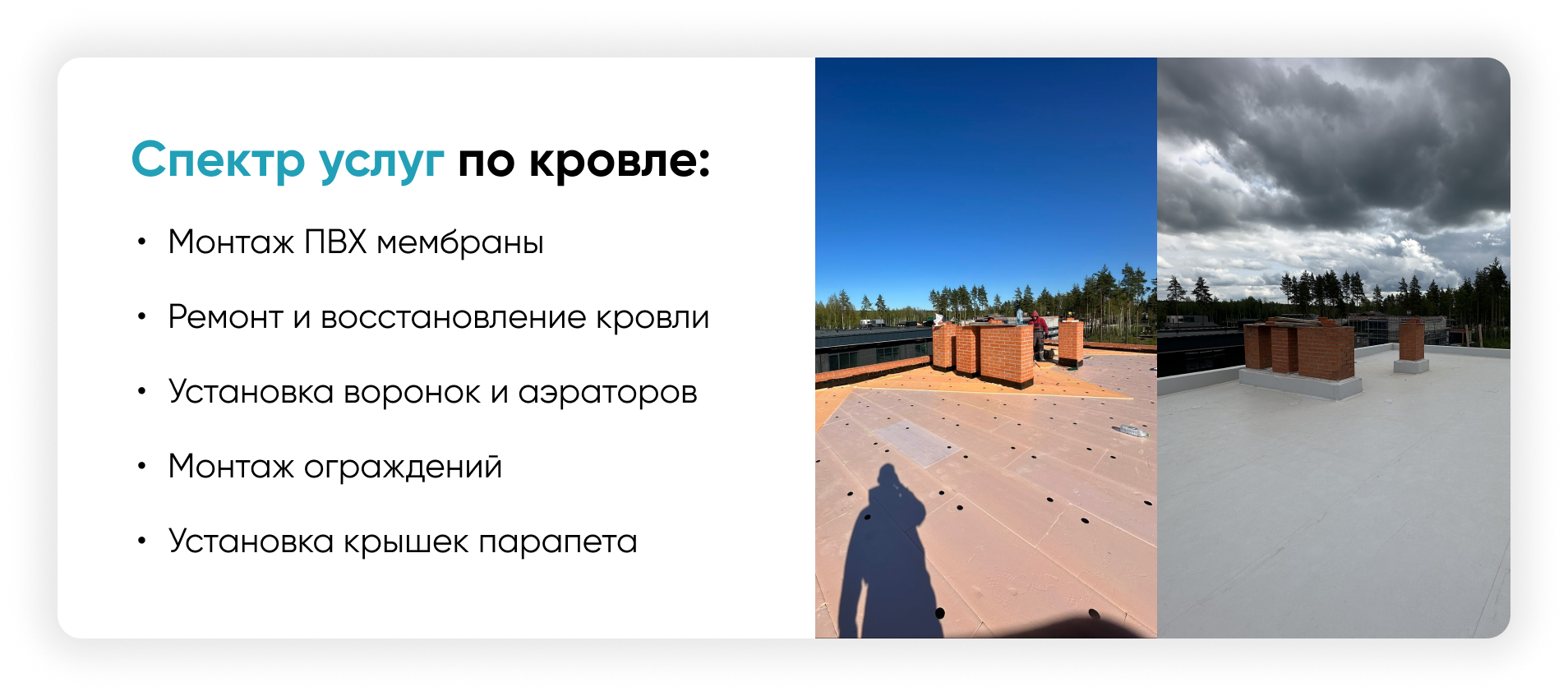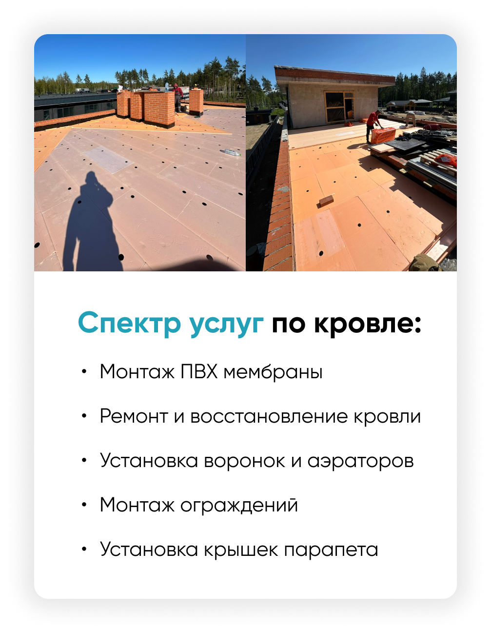 Передаем герметичную и готовую к эксплуатации кровлю после финальной проверки. Предоставляем гарантию на выполненные работы и остаёмся на связи после завершения проекта.